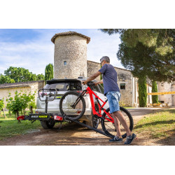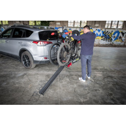 Permet de mettre votre vélo sans effort sur votre porte vélos (idéale pour les vélos électriques) évite de devoir porter les 25 à 30kg d’un vélo électrique à bout de bras.