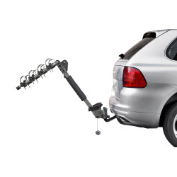 Nombre MAX de vélo: 4Compatible boule de remorquage: ouiCompatible col de signe / boule détachable: ouiDimensions (Largeur x profondeur): 34 x 23cm(mesurée depuis le centre de la boule de remorquage jusqu’au bord extérieur du support de plaque d’immatriculation) .Dimension plié: 86 x 34 x 30cmPoids: 9.8 kgChargement MAX: 60kgPoids max par vélo: 15kgInclinaison: ouiTraitement anti-corrosion : ouiTableau d’éclairage intégré: En optionVerrouillage de la boule: ouiVerrouillage du vélo: ouiNormes : XP R-18 904-4