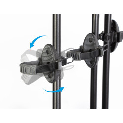 Les supports de roue s’adaptent à tous les empattements, même les très petits vélos pour enfants.Système sécurisé par un bouton de verrouillage.