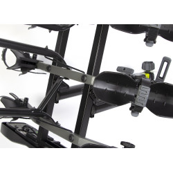 Nombre MAX de vélo: 3Compatible boule de remorquage: ouiCompatible col de signe / boule détachable: ouiDimensions (Largeur x profondeur): 88 x 77cm(mesure du centre du support de boule d’attelage au bord extérieur du support de plaque d’immatriculation).Poids: 14.5 kgChargement MAX: 60kgPoids max par vélo: 20kgTaille max vélo: accepte des vélos jusqu’à 119 cm d’empattement en 29"Largeur MAX pneu:3.5"Inclinaison: ouiTraitement anti-corrosion : ouiTableau d’éclairage intégré: ouiType de prise de panneau d’éclairage: 7 brochesVerrouillage de la boule: ouiVerrouillage du vélo: ouiNormes : XP R-18 904-4